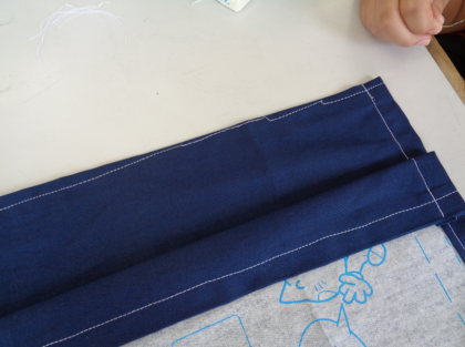 今日はエプロンの右脇にラベル(名前・洗濯表示)をつけて、ミシンで縫いました。上手に扱えるようになってきました。前回の縫い目と、今回の縫い目を見比べながら、頑張ったことを誉めました!