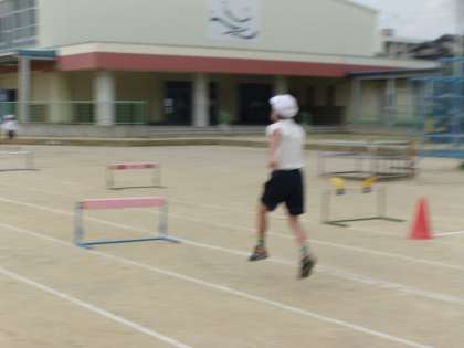 ハードル走では,タイムを計りました。だんだんとハードルを飛び越えることにも慣れてきました。
