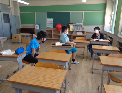 『私たちにできること』の学習です。「水を出しっぱなしにしているのは、もったいない。」、「ごみが多いから、リサイクルして再利用したらいいと思う。」等、現状や課題について話し合いました。
