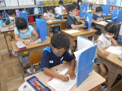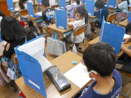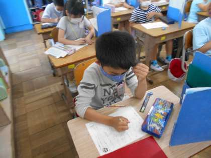 漢字のテストをがんばっています。毎日の宿題も,テストのつもりで丁寧に取り組み,覚えていってほしいと思います。