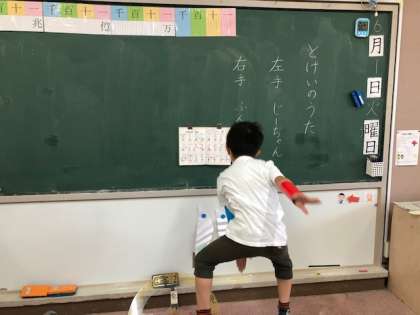 小島よしおの「とけいドリル」の動画を見た後,「とけいのうた」を楽しそうに踊っていました!