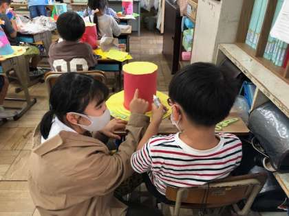 「ぼうしのかざりつけをかんせいさせよう」というめあてで,がんばっていました!