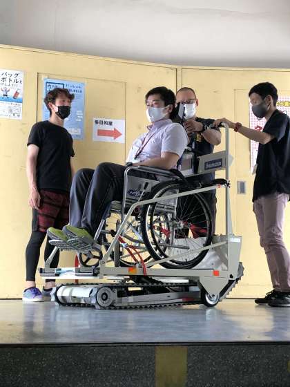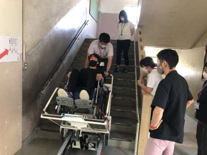 実際に昇降機を操作してみました。緊張しながらも説明通りに操作することができました。複数の職員で操作して安全を守っていきます。