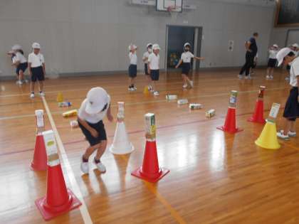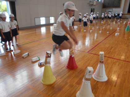 「腕を高く振り上げて,ひざをしっかり曲げる!」というポイントに気をつけて跳びました。