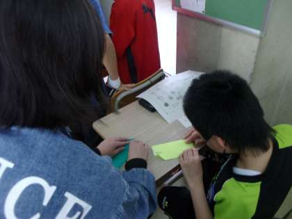 今日の活動では,6年生の人が5年生の人に折り紙の折り方を教えてくれました。