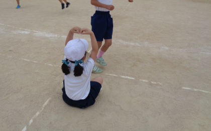 シャトルランをしました。友だちが走っている時は応援したり、線を踏んでいるかマルバツで確認したりしました。