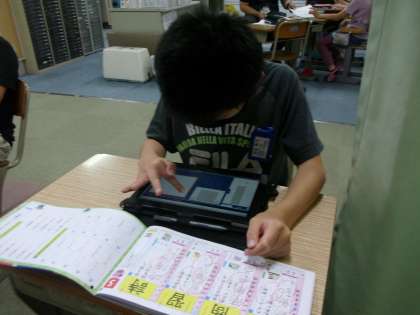 新出漢字を学習しました。タブレットでは,なぞり書きの後,見本なしで覚えているかを確かめる書きマスが設定されています。しっかり覚えて書くことができていました。