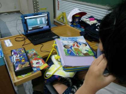 オンラインでクラスとつながっています。月を外国語で発音していました。