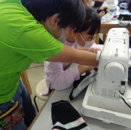 エプロン作り、完成間近です!今日はポケットを縫い、アイロンでアップリケを付けました。アップリケは文字にしたり、生地の線を利用して(パックマンを貼る位置を工夫して)動いているように表現したり、それぞれの個性が輝いていました。友だちを手伝う姿も見られました。