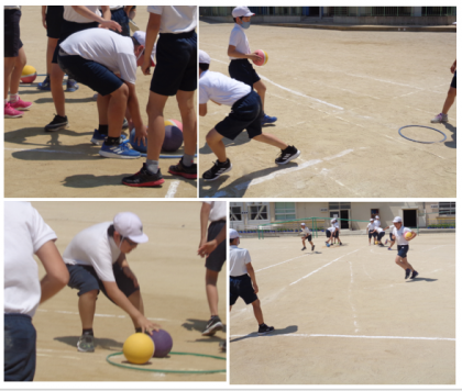 セブンボールというゲームをしました。いちはやくボールを3個集められるよう、一生懸命に走っていました。