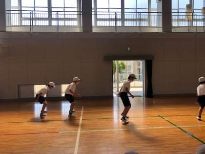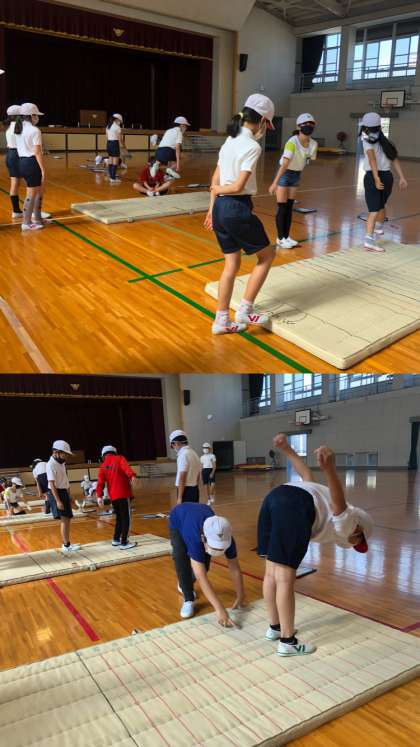 今日の体育ではスポーツテストに向けて,「反復横跳び」「立ち幅跳び」の練習をしました。本番では,今日の記録を超えられるよう目標を決めて取り組みます!
