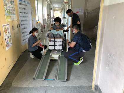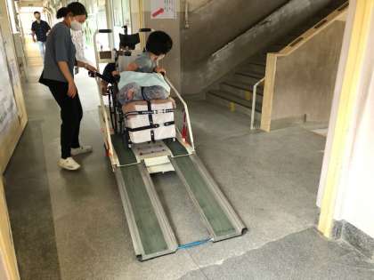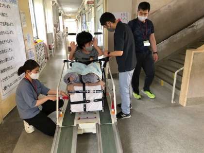 今週の始めから,階段昇降機を使って,通常学級の授業を受けに行っています。