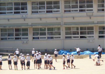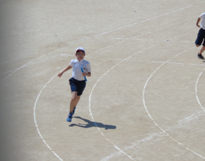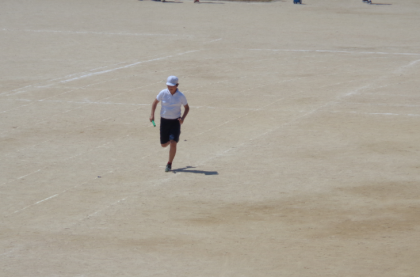 リレーで真剣に走っていました。走り幅跳びにも挑戦!