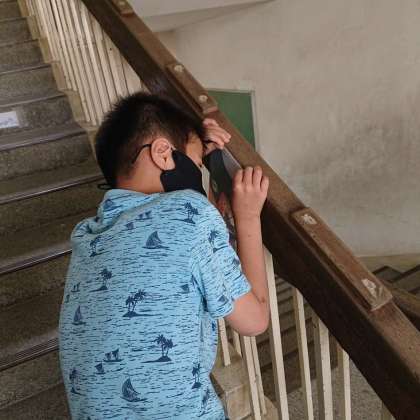 教科書の「Hello!Math」に載っている『かたむき分度器』を使って,学校内の斜めになっている物の傾きを調べました。