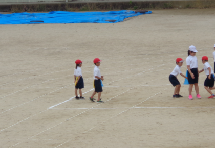 タグカバディをしています。腰についたタグを取られないように逃げましょう!