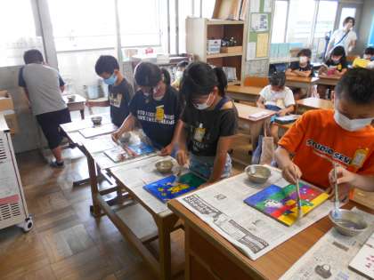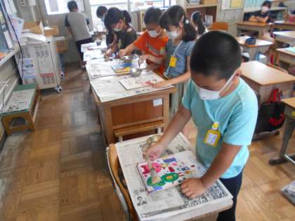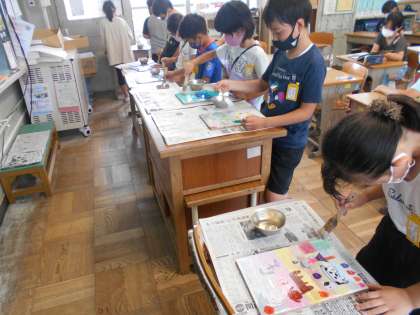 釘打ちトントンビー玉げームの色付けが終わり,ニス塗や釘打ちに入っています。どんどん完成に近づいています!