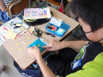 小物入れづくりの続きで小銭入れとコースターを作りました。ボタンを付けたり,かがりぬいで縫ったり,イニシャルをフェルトシールで貼り付けたりと2時間集中して取り組みました。