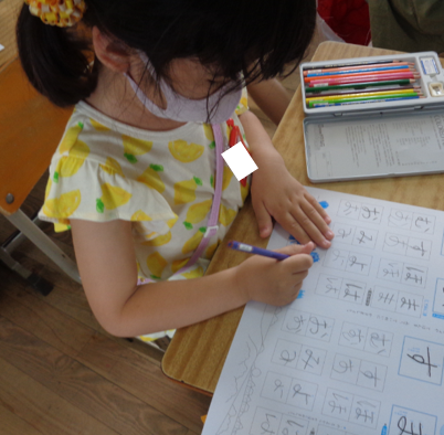 丁寧にゆっくりと書くことを意識していました。色塗りもできました。