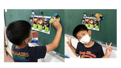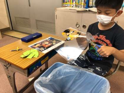 ラミネートをかけ,切り取って,背景に両面テープで貼りました。