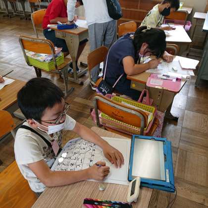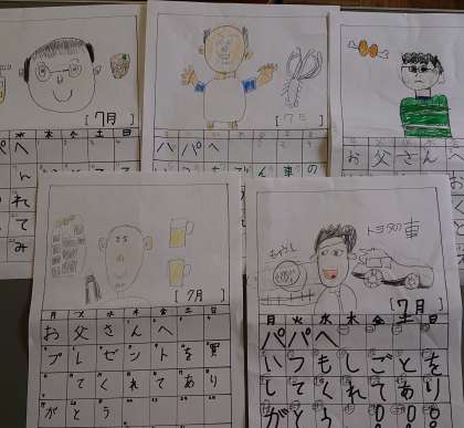 みんな喜んでくれる顔を想像しながら,お父さんの似顔絵や好きなものを描いていました。
