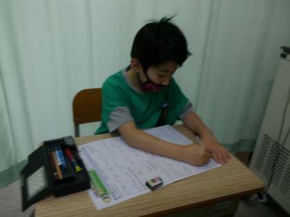 4・5月の漢字50問テストをしました。時間内に書き終わり,間違えがないか見直しをしていました。