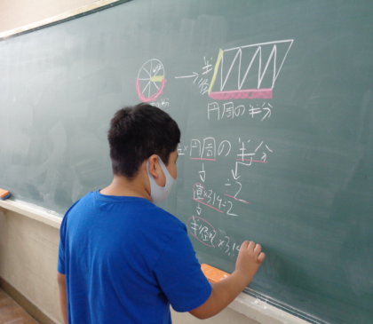復習をしています。円の面積を求める公式について、説明できるようになりました。