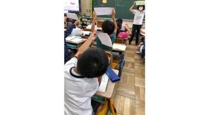 「三角形と四角形」の単元で,紙を折ってできる形を調べました。