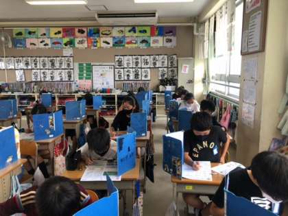 今日は,外国語・社会・算数のテストをしました。