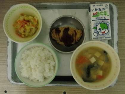 7月13日の給食は「ごはん、牛乳、冬瓜のみそ汁、あじフライ、ソース、野菜ソテー」でした。
