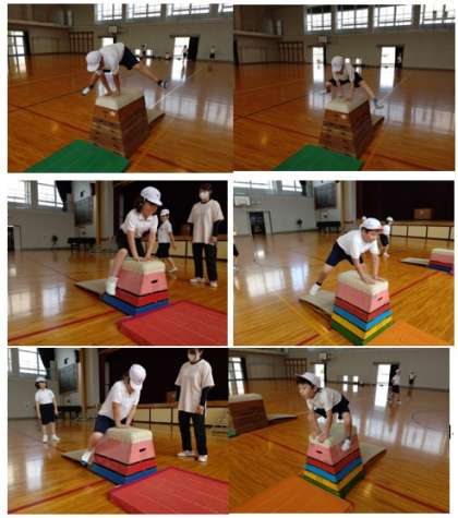今日のなかよし体育は,跳び箱をしました。着地の姿勢や,跳び箱を腕で後ろに押すなどそれぞれのめあてを持って取り組みました。