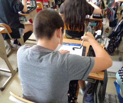 手本を見ながら、ゆっくりと丁寧に書いていました。