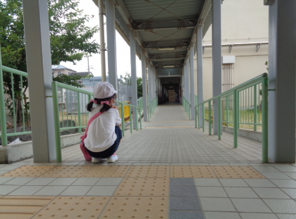 体育館に早く着きすぎて、「みんなまだかなぁ?」と待っていました。