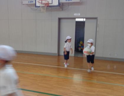 ドッジボールでは、外野を担当しました。ボールがくると走って追いかけ、投げる意欲満々でした!