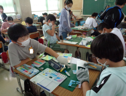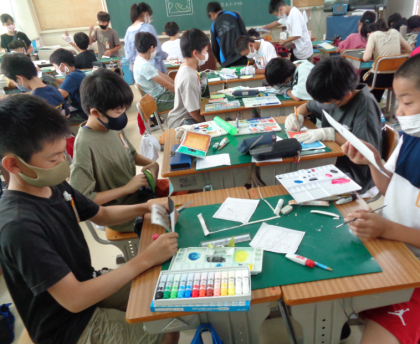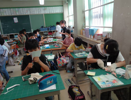 切り絵です。名前の漢字を、アートナイフを使って作りました。慣れた手つきで安全に、黙々と進めている6年生。さすがです!