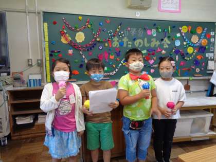 今回のお楽しみ会は,出し物だけでなく,司会も子どもたちにお願いしました。