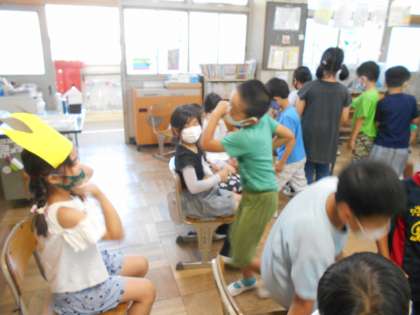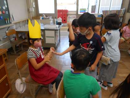 みんな遊びでは,なんでもバスケット・宝さがし・じゃんけん列車・王さまじゃんけんをしました。大盛り上がりでした。