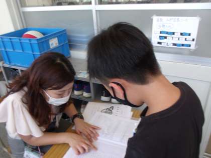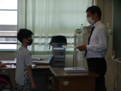 学級担任の先生から1学期のがんばりを伝えてもらい,通知表を受け取りました。