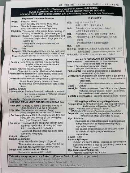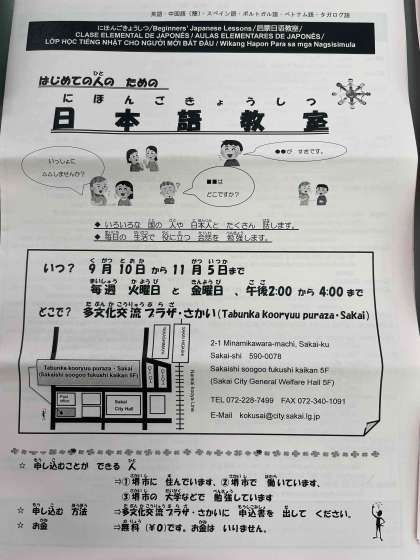 夏休みに入り,一週間がたちましたが,体調にお変わりはないでしょうか。堺市立国際交流プラザから案内が届きました。ご希望のご家庭がありましたら,日本語指導担当か担任までお知らせください。