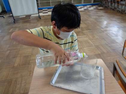 1リットル升を使って,2デシリットルを慎重に測り,容器に入れ,