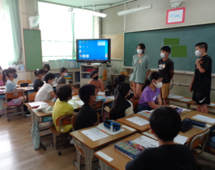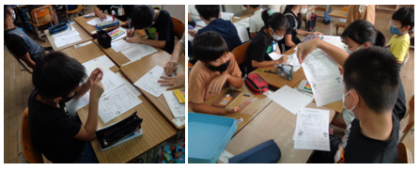 その後は、わくわくクイズに向けた準備や、食についての標語を作ったりしました。悩みながらもじっくりと考え、6年生が5年生にアドバイスする姿も見られました。