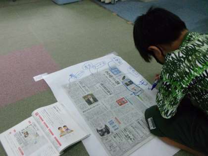 「新聞を読もう」の学習に入りました。新聞のどこに何が書いてあるか,調べました。
