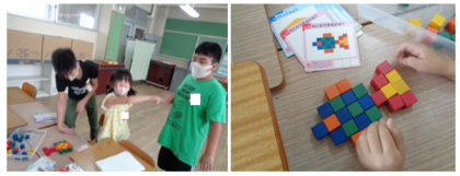 手本通りに上手にできました!6年生が褒めてくれて、にっこり!