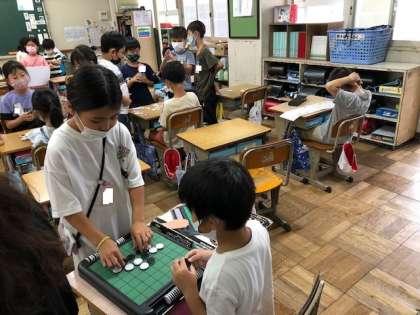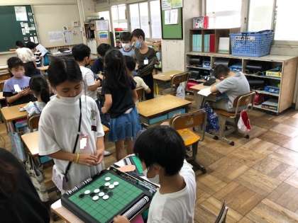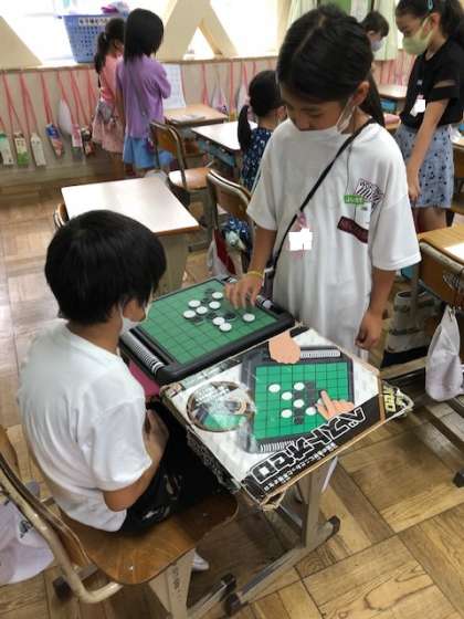 緊急事態宣言が出されているので,休み時間に,ふだんは,雨の日にしかできないオセロやカードゲームなどをして,感染防止に取り組んでいます。