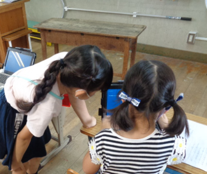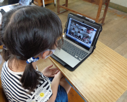 タブレットのカメラに向かって「お〜い!」と、楽しそうに手を振っていました。困った時には友だちがアドバイスしてくれました。