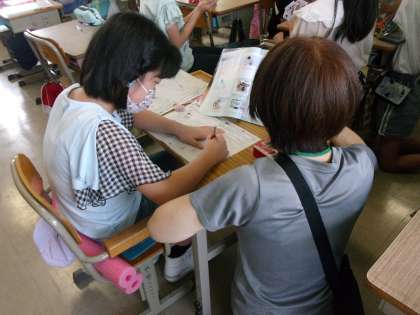 顕微鏡の各箇所の名前や観察の仕方について,プリントで復習しました。