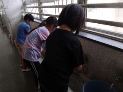 給食当番も友だちと協力して取り組めています。