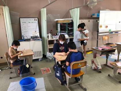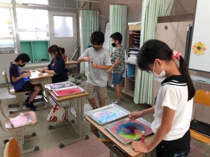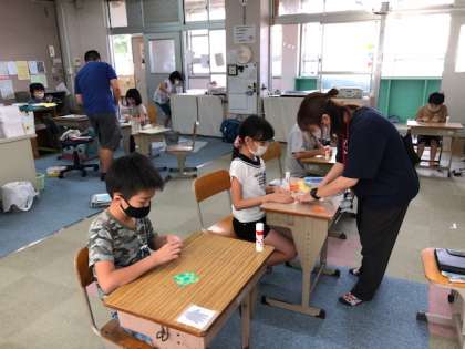 マーブリングが終わった人は,折り紙で,お花作りに取り組みました。