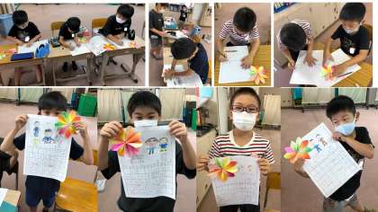 敬老の日のプレゼントになるかもと,おじいちゃん,おばあちゃんの絵やメッセージを一生懸命にかきました!