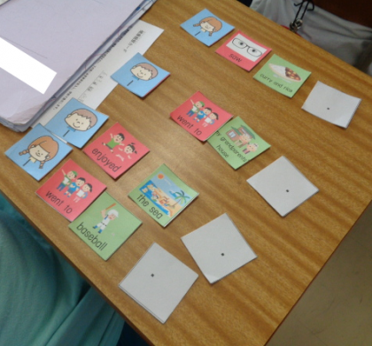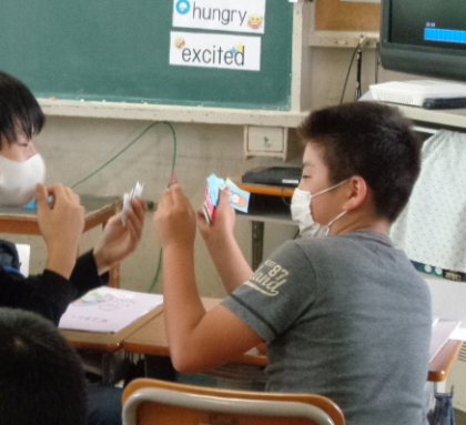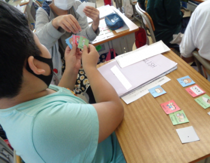カードゲームで、楽しんで英文をつくっていました。