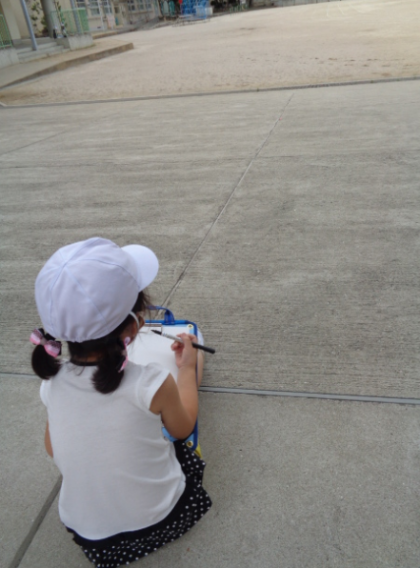校舎の絵を描きました。実際に見に行くだけではなく、写真で手元で見れるようにしたり、教師が手本を一度描いて見せたりすることで、自分で頑張って描くことができました。